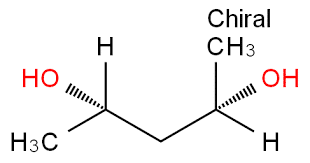 مولکول ۲،۴-پنتاندیول شامل یک زنجیره پنجکربنه است که دو گروه هیدروکسی (-OH) در کربنهای دوم و چهارم قرار گرفتهاند.