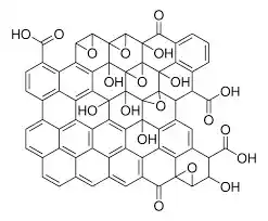 نسبت C/O: متغیر؛ گزارشها معمولاً نسبت کربن به اکسیژن در محدودهٔ تقریباً ۲:۱ تا ۳:۱ گزارش میشود که بسته به روش ساخت تغییر میکند.