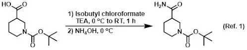 توضیح: تبدیل اسید کاربوکسیلیک به انیدرید مختلط با ایزوبوتیل کلروفرمات امکانپذیر میشود و سپس باعث تسهیل واکنشهای بعدی مانند آمیدسازی یا استریفیکاسیون میگردد.