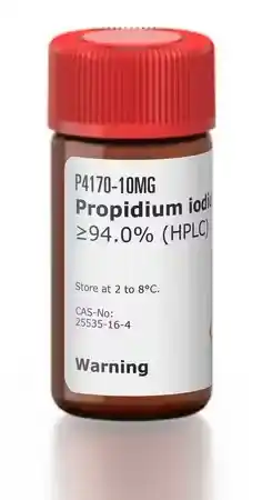 رنگ پروپیدیوم یدید (Propidium Iodide) که با کد P4170 شناخته میشود، یک رنگ فلورسانس کاتیونی از خانوادهی اتیدیومها است. این ترکیب بهطور خاص به DNA دو رشتهای متصل میشود اما به دلیل ناتوانی در عبور از غشای سلولهای زنده، تنها سلولهای مرده یا دارای غشای آسیبدیده را رنگآمیزی میکند.