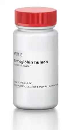 Hb هموگلوبین انسانی کد H7379 پروتئینی است که در گلبولهای قرمز خون وجود دارد و نقش اصلی آن حمل و انتقال اکسیژن از ریهها به سایر بافتها و اندامهای بدن و همچنین انتقال دیاکسید کربن از بافتها به ریهها برای دفع از بدن است.