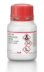 خرید تالیوم سولفات دارای نقطه ذوب ۶۳۲ درجه سانتیگراد و وزن مولکولی ۴۸۴.۸۴ گرم بر مول است. در صورت تماس با این ماده، لازم است اقدامات ایمنی لازم انجام شود و محل کار به خوبی تهویه شود. در صورت مسمومیت حاد، نیاز به مراقبتهای پزشکی فوری است تا از بروز عوارض جدی و احتمالی جلوگیری شود.